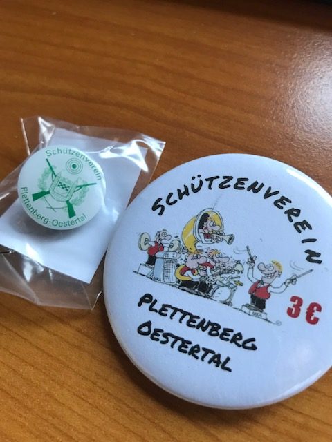 Jedoch eine erfolgreiche Nachricht gibt es vor unseren Schützenfest. Die Pins und Buttons sind da. Wie auf der JHV und diversen erweiterten Vorstandssitzungen erwähnt, soll durch den Erwerb die 3. Kapelle und der Planwagen finanziert werden. Der Rest, bzw. der Überschuss fließt zu 100% in die Kasse der Kinder-und Jugendabteilung. Je Pin und Button sind es nur 3€ , zusammen 5€. Wer mehr geben will, kann dies gerne tun. Hiermit bedanke ich schon mal für die bis jetzt getätigten Spenden und Erwerb der Pins und Buttons. Jeder hat was davon, nämlich was vom Verein, Unterstützung und das aktive miterleben der Festumzug durch den Planwagen.